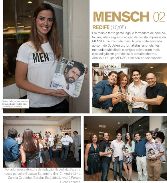 Esse mês de maio foi marcado pelo lançamento do segundo número impresso da revista MENSCH. A edição que traz na capa o ator Eriberto Leão e as musas Carol Nakamuda e Hermila Guedes em entrevistas e ensaios exclusivos para a MENSCH teve dois lançamentos, em Recife e outro no Rio de Janeiro. Separamos os melhores clicks dos dois eventos reuniram leitores, artistas, fotógrafos, colaboradores e amigos.