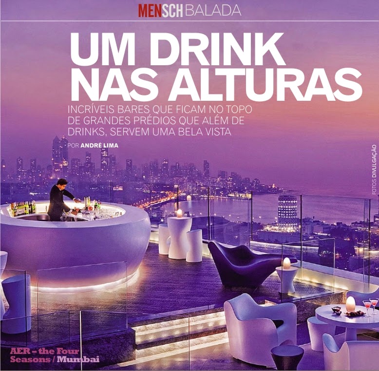 Uma vista panorâmica para cidade e entre seu drink e uma linda indiana um teto cheio de estrelas, assim é o Aer Bar, em Mumbai, que se estende por toda cobertura do Four Seanson Hotel Mumbai. O local é ponto de encontro da elite de Mumbai, executivos e boa parte dos baladeiros de plantão, que pagam em média uma taxa de entrada 100 dólares por noite. Além de um nada simples bar, o local possui uma deliciosa cozinha com ênfase em carnes internacionais, queijos, trufas de pistache, salmão defumado com gengibre e sopas. No fim da noite, o Happy Hour pode acabar em uma balada com champanhes e todos os cocktails com variação de DJ ou banda de jazz, a depender do dia. www.fourseasons.com