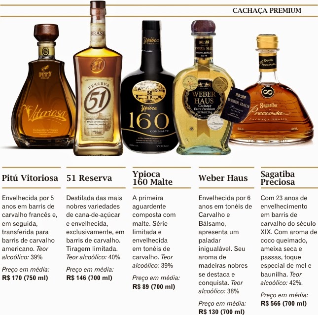A cachaça é a aguardente de cana, com seu teor alcoólico entre 38% e 48%. Para enaltecer e realçar sabores riquíssimos e diferenciados, a cachaça branca, em geral é engarrafada logo depois de produzida – ou armazenada e envelhecida, por um ano no mínimo em barris de madeiras típicas de cada canto do Brasil como: a Amburana, Jequitibá, Amendoim, Bálsamo, Ipê, Freijó, Eucalipto, Castanheira e o conhecido Carvalho, além de várias outras, conquistando seu espaço no cenário nacional. Se permanecer mais de três anos armazenada nos barris recebe a qualificação de Cachaça Premium ou Extra Premium.