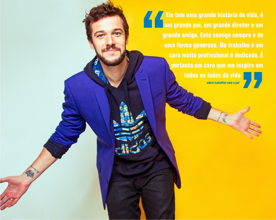 Como teu pai influenciou na sua carreira? Costuma pegar alguns toques com ele? Como é a relação pai/diretor X filho/ator? É uma relação amorosa em primeiro lugar. Nos amamos muito e principalmente nos respeitamos muito. Temos um lado artístico em comum que nos faz encharcar a vida com uma liberdade bonita. Ele tem uma grande história de vida, é um grande pai, um grande diretor e um grande amigo. Está comigo sempre e de uma forma generosa. No trabalho é um cara muito profissional é dedicado. É portanto um cara que me inspira em todos os lados da vida. Como diretor é sem dúvida um dos melhores com quem já trabalhei. E não é mesmo por ser meu pai. É por que é bom de verdade e já mostrou isso diversas vezes. Sempre que trabalhamos juntos, a parceria e a seriedade sempre se fizeram presentes de forma natural. A gente se entende sem precisar falar muito.