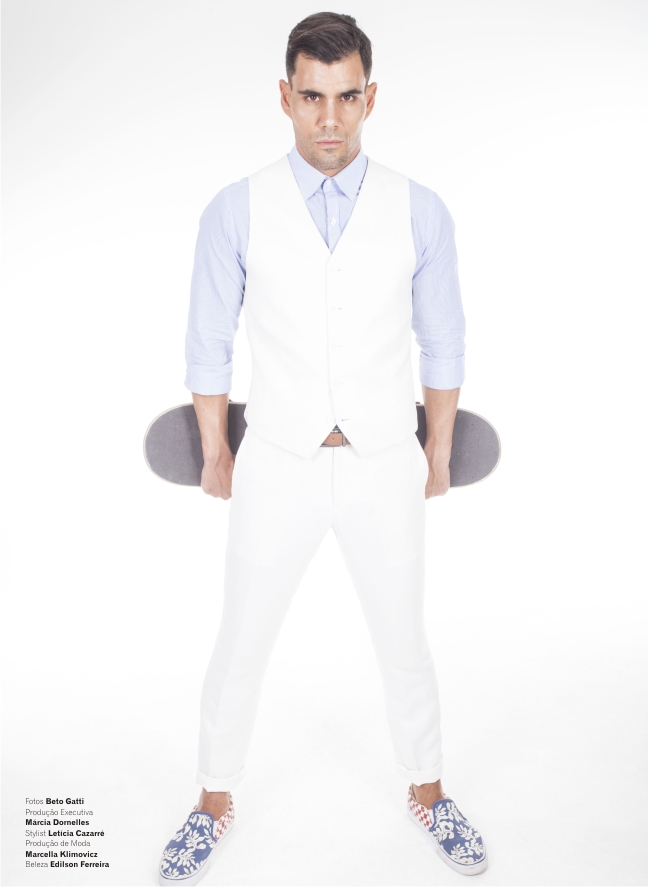 MC Merlô vive sem camisa, é vaidoso em relação a seu corpo? E na hora de se vestir, qual seu estilo? Eu cuido de meu corpo, cuido da saúde, faço esporte, procuro me alimentar bem. Quero estar com o corpo bonito, quem não quer? Mas não é uma neurose, eu como coisas com glúten, como carne, manteiga. Tento maneirar nas quantidades e também ingerir alimentos saudáveis, frutas, verduras, grãos integrais. Meu estilo de vestir varia muito. Eu gosto de me vestir, mas como o Rio é muito quente, eu acabo dando preferência ao conforto. Adoro calças, casacos e jaquetas, mas aqui é difícil de usar. Também adoro usar terno e gravata, queria usar mais.