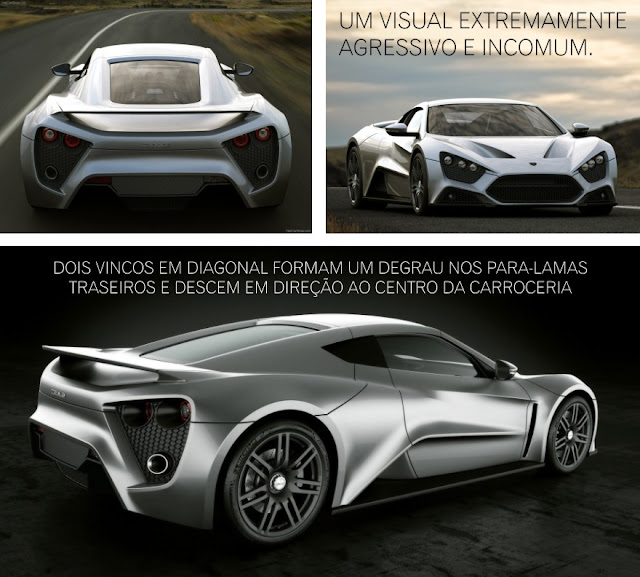 Tudo no Zenvo ST1 chama atenção, mas um aspecto marcante dele é o visual extremamente agressivo e incomum. Há “músculos”, vincos e entradas e saídas de ar por todos os lados. Na frente, destaca-se um enorme “bocão” ao centro que, junto com as duas cavidades bem pronunciadas no capô, tem função exclusivamente aerodinâmica. Como o motorzão 7.0 V8 fica na traseira, são as quatro tomadas de ar laterais, duas à frente das rodas traseiras e outras duas atrás das janelas, que alimentam o coletor de admissão. Ainda nas laterais, chamam bastante atenção as enormes rodas de liga-leve de 19 e 20 polegadas na frente e atrás, ambas cobertas com pneus de perfil baixo 255/35 e 255/30 da Michelin, na ordem. Para recebê-las, foram moldados para-lamas corpulentos com design arrojado.Também fora do comum, a traseira segue o estilo arrojado e anguloso. Das laterais, dois vincos em diagonal formam um degrau nos para-lamas traseiros e descem em direção ao centro da carroceria, formando uma saliência. Ali, fica um aerofólio, fixado nas pontas. As lanternas, assim como os faróis, tem canhões de luz individuais cobertos por uma moldura do tipo colméia. Na mesma seção ficam também as saídas do escapamento. Uma enorme saída de ar central na base do pára-choques completa o visual arrojado.