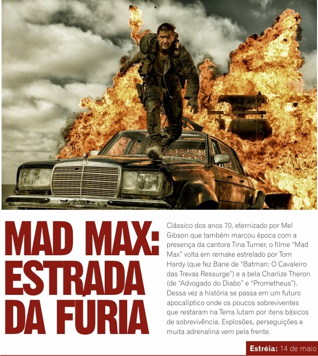 Tirando pelos próximos lançamentos dos filmes de ação que vão estrear esse semestre nas telas de cinema, essa safra promete altas temperaturas e grandes doses de adrenalina. Destaque para a volta de alguns “clássicos” do cinema como “Mad Max”, “Jurassic Park” e o “clássico recente”, “Velozes e Furiosos”. Os super-heróis marcam presença com mais um filme da franquia da Marvel, “Os Vingadores”, e grandes atores como Brad Pitt e Liam Neeson caem em campo para garantir muita ação e tensão. Começando o semestre pra lá de agitado, o astro do momento, Channing Tatum, estreia com “Foxcatcher” e em seguida a ficção científica “O Destino Júpiter”. E isso é só o começo, pois ainda teremos muita ação no segundo semestre. Enquanto isso…. Ação!