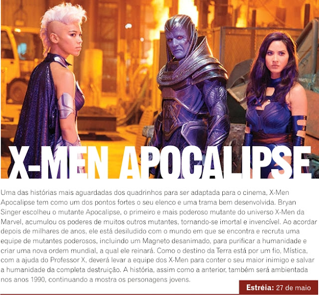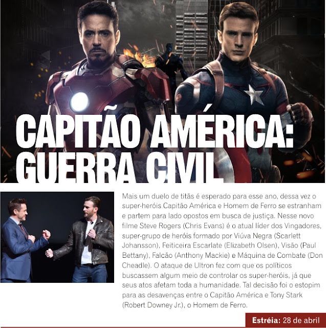 Não tem dúvida, esse ano será o ano dos Super-Heróis no cinema. Grande nomes da Marvel e DC Comics invadem as telonas em filmes espetaculares que prometem altas temperaturas e grandes doses de adrenalina. E isso apenas no primeiro semestre heim!? Logo agora no início de janeiro temos a volta de Rock Balboa, em seguida o esperado Supermen vs Batman, vem ainda X-Men, Capitão América, Homem de Ferro, Deadpool… Isso sem falar dos heróis sem máscara e capa, heróis como os de Leonardo DiCaprio, Gerard Butler e Jeff Goldblum. E isso é só o começo, pois ainda teremos muita ação no segundo semestre. Enquanto isso…. Ação!