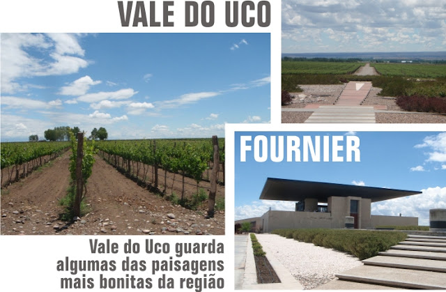 Na pequena cidade de Maipo estão outras das gigantes do mercado, como a Trapiche e a Zucardi. A segunda oferece uma estrutura excelente para almoço no meio dos vinhedos e é uma ótima opção para quem quer conhecer mais sobre o processo de produção industrial dos vinhos e aprender algumas técnicas de degustação. Não deixe de visitar a pequena e charmosa Bodega Carinae. Administrada por um casal de franceses que recebem pessoalmente os visitantes, a Carinae é a oportunidade de conhecer uma vinícola artesanal e ouvir a história de vida dos proprietários e sua paixão pelo negócio. A degustação é conduzida pelos próprios proprietários no jardim da bodega em clima caseiro. Depois da visita é impossível resistir à compra de um dos seus vinhos excelentes.A região mais distante do Vale do Uco guarda algumas das paisagens mais bonitas da região e vale a visita apesar da distancia de mais de 100 km de Mendoza. Aqui o destaque está na moderna e sustentável bodega O Fournier. Com um projeto arquitetônico diferenciado essa bodega inova não só na construção, mas também na recepção dos convidados. A degustação é oferecida apenas a clientes com reserva para refeição e é acompanhada de um delicioso menu degustação harmonizado com cada vinho servido. O restaurante com grandes janelas de vidro tem vista para os Andes e os vinhedos. Em nossa visita acabamos passando a tarde inteira na vinícola apreciando com calma cada prato e cada um dos excelentes vinhos servidos.