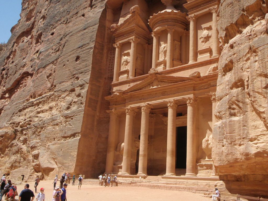 Renovados com a manhã de praia partimos para o Monte Nebo, onde o profeta Moisés teria avistado a terra prometida. O lugar é realmente especial com uma vista deslumbrante e as ruínas de uma igreja ortodoxa. Hoje no local está sendo construída uma nova igreja, que indica o local onde supostamente foi encontrado o túmulo de Moisés. Da montanha partimos para a interessante cidade de Madaba. Aqui durante a construção de uma Igreja Ortodoxa foi encontrado um antigo mapa feito com mosaicos, que indicava todas as rotas de peregrinação à terra Santa. Parte do magnífico trabalho de arte bizantina continua preservada no chão da igreja. Por conta dessa e outras belas peças encontradas em Madaba, a cidade é conhecida como terra dos mosaicos. Nos dias de hoje muitos artistas ainda reproduzem as técnicas da antiguidade e vendem seu trabalho pelas ruas do centro. Além da beleza do local, um dos pontos altos da visita foi nosso primeiro banquete Jordano. Com grandes semelhanças com a cozinha libanesa já apreciada no Brasil, a gastronomia local é uma atração à parte na Jordânia. Naquela tarde fomos recebidos com um maravilhoso almoço nos jardins de um casarão histórico onde fica o restaurante Haret Jdoudnah. Depois do banquete seguimos viagem rumo a Petra por estradas cênicas que atravessam o deserto passando por acampamentos Beduínos e pequenos vilarejos. Já era noite quando chegamos a Wadi Musa, povoado onde fica a entrada de acesso para o Parque de Petra, controlado pela Unesco. A cidade conta com excelentes hotéis como o Movenpick, que fica a poucos metros do acesso do parque e tem estrutura completa de um hotel cinco estrelas, construído ao estilo de palácio Sírio.