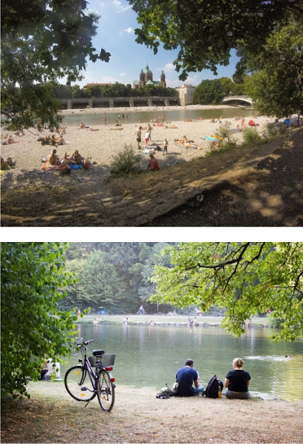 Munique é conhecida mundialmente pela cerveja, mas foi a água o que mais nos impressionou. Como uma cidade de quase 6 milhões de habitantes tem um rio completamente limpo que atravessa o centro? Quem mora em Munique desfruta de um privilégio que há muito tempo perdemos nas cidades brasileiras: tomar um banho de rio no centro. O rio no verão, quase mais do que a cerveja, é um dos grandes atrativos da cidade. Suas margens viram praias e dar um mergulho após um dia quente de trabalho é costume local.