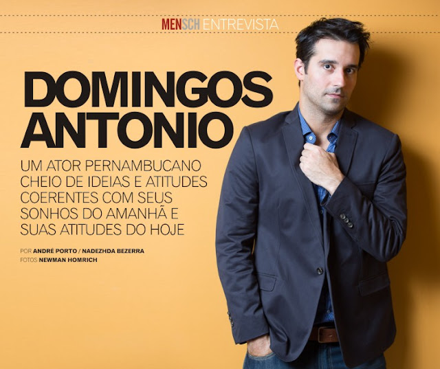 Pra começo de conversa, Domingos Antonio teve o mesmo professor do atual vencedor do Oscar, Daniel Day Lewis e de Miranda Richardson, além de ter tido aulas com ninguém menos que Kevin Spacey quando estudou na Bristol Old Vic Theatre School, Inglaterra. Mas quem acha que ele se vangloria disso se engana, Domingos não é um ator focado em fama, o que ele busca é realizar um bom trabalho, que ele acredite e se entregue, e que seja reconhecido por isso. Fazer as malas e sair de Recife para Bristol fez dele não só um ator melhor, mas uma pessoa melhor. E na volta escolher São Paulo como habitat foi uma decisão prática e estratégica. Entrevistar Domingos foi uma grande oportunidade para conhecer e apresentar aos leitores da MENSCH, um jovem ator de ideias e atitudes coerentes com seus sonhos do amanhã e suas atitudes do hoje.