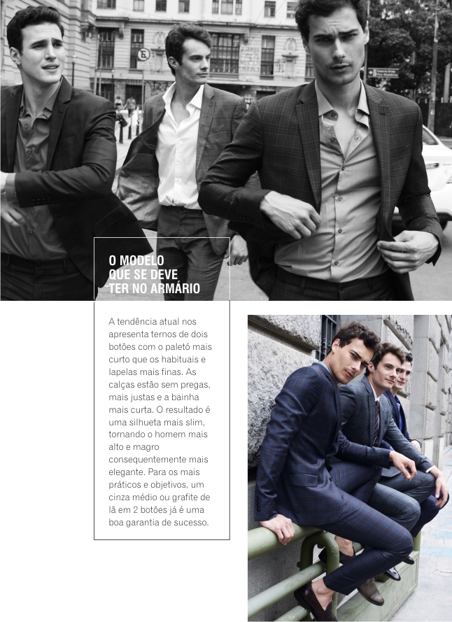 – Modelo de corte slim, sem gravata, torna- se chic e despojado;