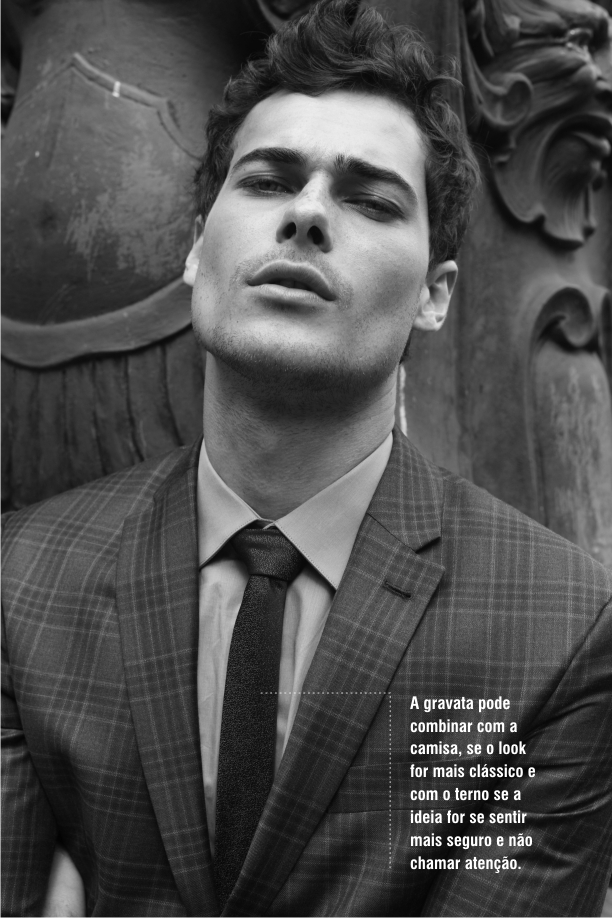 Na hora de escolher a gravata, fique atento à harmonia do conjunto e a sua própria personalidade. Não use gravatas divertidas se esse não for seu estilo. A gravata pode combinar com a camisa, se o look for mais clássico, e com o terno, se a ideia for se sentir mais seguro e não chamar atenção. Os mais descolados podem fazer sobreposições e contrastes de cores. No verão e quanto mais informal for a ocasião. A melhor pedida sem gravata é um modelo de corte slim, que se torna chic e despojado (como já dissemos). Já em ocasiões onde ela não é exigida, como viagens, passeios e festas, podemos usar um terno com uma malha básica de manga curta ou até mesmo longa e um mocassim. Em casos de trabalho, o mesmo define a necessidade.
