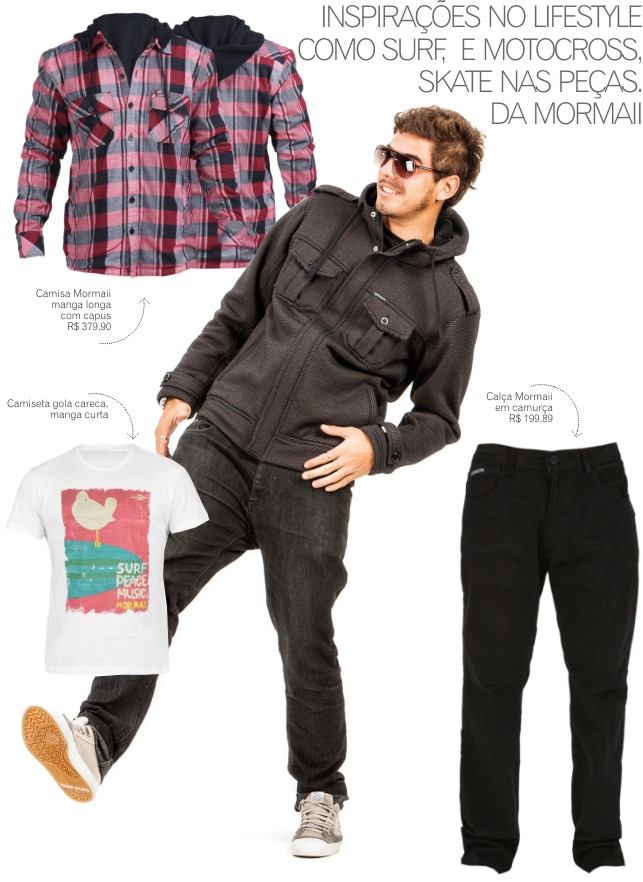 Para essa temporada, a marca acrescentou implicitamente detalhes dos esportes que inspiram seu lifestyle como surf, skate e motocross, nas roupas. Entre as peças que podem ser encontradas estão moletons dupla face com capuz, jaquetas estruturadas e calças jeans, todas com modelagens que aliam estilo, conforto e qualidade, característica essencial dos produtos Mormaii. Para saber mais, acesse o site da marca.