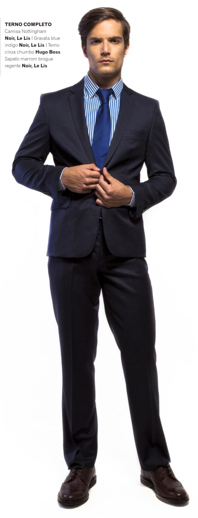 Por volta de 1860 calça e paletó passaram a ser feitos no mesmo tecido. Mas os detalhes como fendas, lapela, ajustes e abotoamento é o que fazem a diferença para um caimento perfeito no corpo. A lapela alta é a mais tradicional com corte reto e, em geral, três botões. Nesse caso a gravata fica mais em evidência o que tira a atenção de uma barriguinha, por exemplo. Os paletós com lapela alongada, um botão e acinturados funcionam melhor para os esbeltos. Os paletós com dois botões são o meio termo e os mais vistos nos escritórios. Ele garante modelagem acinturada, alonga a silhueta por conta da lapela igualmente alongada e disfarça a barriga. Para ter certeza de que o terno está perfeito em você, é preciso observar e experimentar. Não tem outro jeito. Observe a linha dos ombros se está perfeita, se há dobras no tecido nas costas (isso indica que os ombros estão justos ou folgados demais), se sobra muito tecido na barriga e observe também o comprimento das magas que deve mostrar 0,5cm da camisa. Atenção também à calça que deve ter a barra feita em diagonal de forma a encostar no cadarço e terminar no começo do salto do sapato.