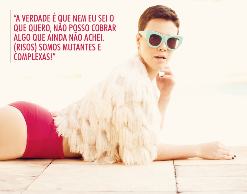 E o que os homens ainda não aprenderam sobre as mulheres? Afinal, o que querem as mulheres? A verdade é que nem eu sei o que quero, não posso cobrar algo que ainda não achei. (risos) Somos mutantes e complexas!