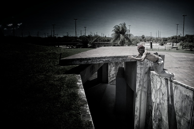 Certo dia, um amigo e eu marcamos para treinar Parkour. E, em um dos momentos do treino, resolvemos fazer um salto de precisão em um muro. Esse salto requer conhecimento técnico e habilidades de alto nível, porém, tanto eu como ele estávamos aptos e condicionados a executar tal movimento. O movimento consistia em saltar de um muro de 4,5 metros de altura para outro em uma distância de aproximadamente 2 metros na ponta dos pés. No meu caso não me senti desafiado, só fazia parte do treino. Já para o meu amigo foi um momento de extremo desafio, pois mesmo tendo praticamente o mesmo tempo de treino que eu e um nível de Parkour bem parecido, o meu parceiro de treino estava diante de um dilema.