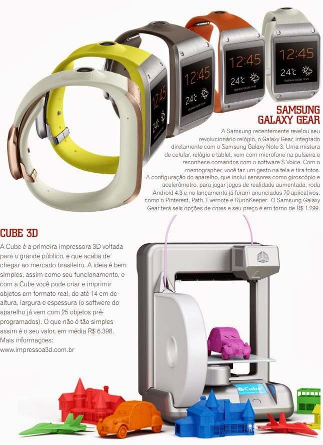 Seguindo a tradição de a cada ano fazer uma lista dos 10 “brinquedinhos” eletrônicos mais legais para incrementar o seu presente de Natal, fizemos uma seleção dos equipamentos eletrônicos que deram o que falar em 2013 e ainda vão fazer mais sucesso em 2014. São eletrônicos inovadores para facilitar a vida moderna acumulando novas funções, ou mesmo tornando a vida mais prática e divertida. Por exemplo, quando você imaginaria ter uma impressora em 3D? Ou um aspirador-robô que faz todo o trabalho sujo de sua casa enquanto você relaxa? Sem falar do gadget que foi a sensação do ano, o Phantom DJI que faz imagens incríveis do alto e ainda transmite tudo online. Vida moderna pede praticidade e superação a cada novo equipamento tecnológico. Desfrute da nossa lista e seja o Papai Noel de você mesmo se presenteando com alguns desses gadgets fantásticos.