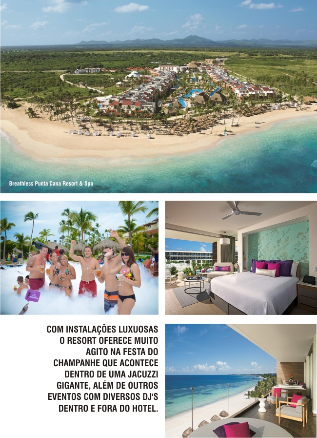 As praias caribenhas também são conhecidas por serem badaladas. O Breathless Punta Cana Resort & Spa aqui (5 estrelas) oferece muita diversão e festas non-stop para casais ou grupos de amigos. Além disso, o resort adults only oferece uma infraestrutura completa com oito piscinas, aulas de dança, música ao vivo, boate, espetáculos, cassino e atividades ao ar livre e entrada inclusa no Cassino.
