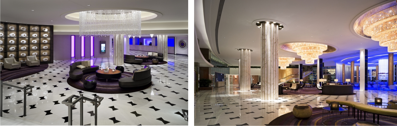 Recentemente eu tive a oportunidade de estar neste hotel gravando um comercial com o Bruce Willis e pude acompanhar o “behind the scenes” de como funciona cada detalhe para ser tão impecável garantir um excelente atendimento. Todos os detalhes de arte teatral e elementos de inspiração sul-americana são frequentemente interligados. Ao entrar no hotel, a prova é que eles fazem isso não por meio de um hall de entrada tradicional, mas sim uma “catedral” forrando suas colunas com folhas de ouro e adornada com murais vivas do chão ao teto. Na parte de trás, ao sairmos pelas portas ao jardim, nos deparamos com uma escultura de ouro de um Esqueleto de Hirst, Mamute de 24 quilates e que tem quase 10 pés de altura, envolto em quadro de vidro à prova de furacão (e que custa 18 milhões de dólares). Realmente, deixa qualquer um de boca aberta.