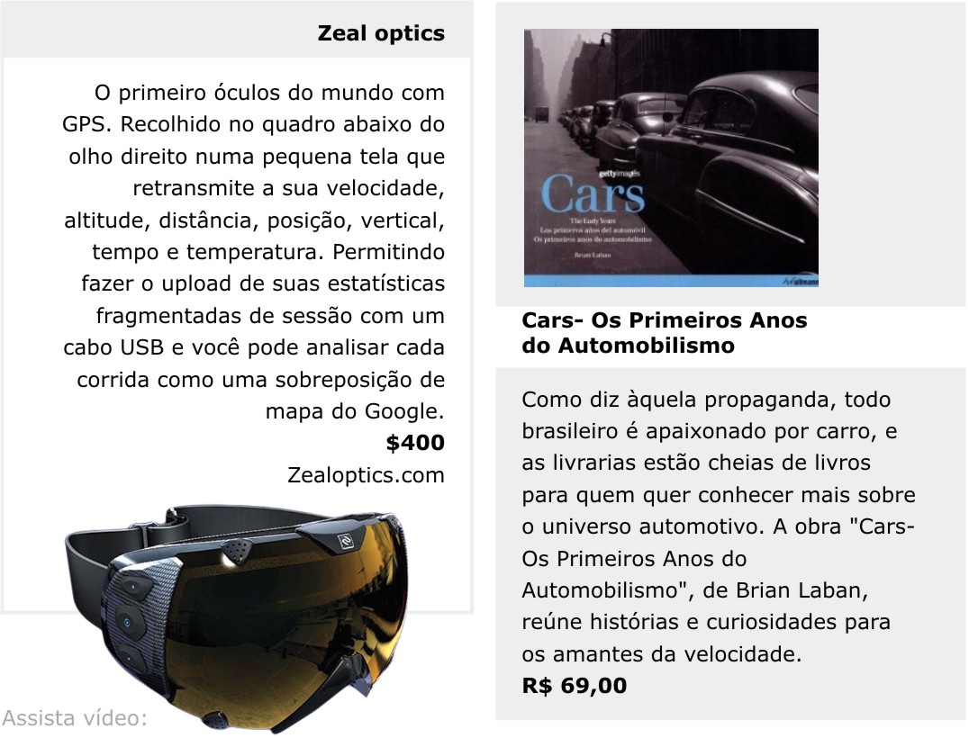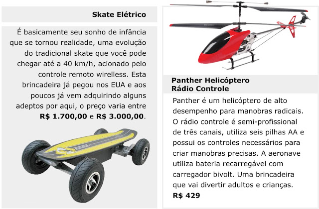 Chegou o fim do ano, para muitos, época de festas, confraternizações, reuniões familiares, atitudes solidárias e religiosas. Também momento de pensar no que é material e efêmero afinal ninguém é de ferro. Se você não tem compromisso em presentear ninguém, ótimo, pise fundo, e aproveite essa época capitalista para “investir” em si próprio. Então, antes de cometer um assassinato do bom velhinho cartão de crédito, vale a pena da uma olhada na lista de alguns presentes ou sonhos que indicamos.