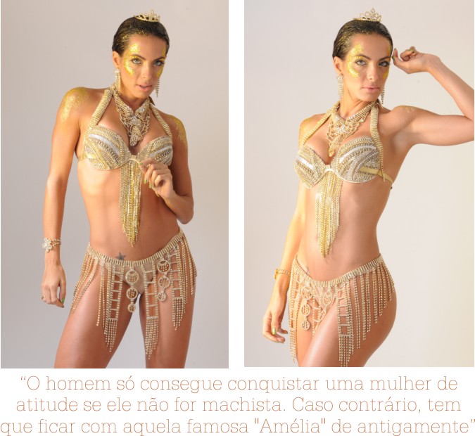 Para quem quer um motivo para assistir o desfile das Escolas de Samba do Rio de Janeiro, a repórter e assistente de palco do Domingão do Faustão, Carla Prata é um belo motivo. Aliás, Carla é uma verdadeira majestade, pois esse ano ela vem como Rainha de Bateria da Grande Rio. Pré-requisitos para isso ela tem de sobra, além de muito samba no pé, Carla esbanja simpatia e atrai todos os olhares quando desfila seu corpão pela avenida com um belo sorriso no rosto. Conversamos rapidamente com nossa rainha sobre o Carnaval e paquera. Vamos lá súditos, se encantem!!