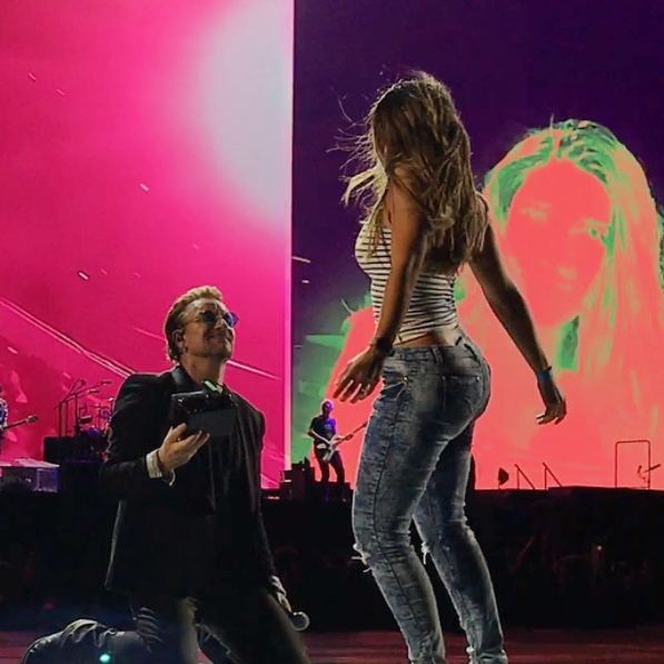 Já é de praxe em um momento épico do show Bono puxar alguma fã da plateia e cantar com ela um trecho de alguma música do repertório (durante muito tempo foi o quase hino “with or without you”), mas não é nada comum que a tal fã roube a cena, no melhor dos sentidos, ficando tão à vontade entre seus ídolos, confiante diante de milhares de pessoas desejosas de estarem no lugar dela, dançando com Bono como se fosse rotina, sendo elegante, sensual e incrivelmente natural.