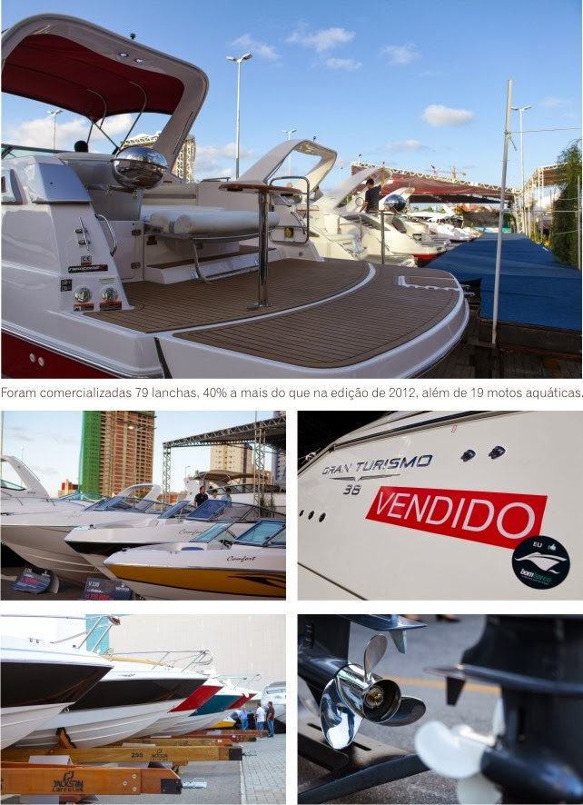 Os organizadores do Recife Boat Show, Jorge Carriço e Jonas Moura, se animaram com os resultados e ainda estimaram um aumento desse montante em 15% nas semanas subsequentes, com novos negócios decorrentes da feira. Foram comercializadas 79 lanchas, 40% a mais do que na edição de 2012, além de 19 motos aquáticas. Essa amostra, concentrada em apenas quatro dias de feira, revela como o mercado náutico do Nordeste está navegando de vento em popa. Quem comemora são os estaleiros. Vários deles estiveram representados no Recife Boat Show, como Recife Náutica, Valent, Fibrafort, Ventura, Yamaha, Sea Doo, Kawasaki, Royal Mariner e muitos outros. “A presença de consumidores focados proporcionou a efetivação mais rapidamente dos negócios, aquecendo ainda mais a produção dos estaleiros, que estão a todo vapor para o verão”, diz Jorge Carriço.