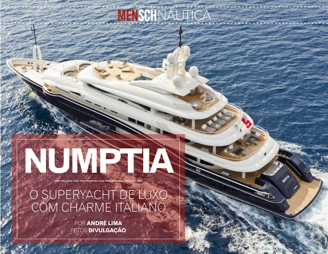 Começamos o nosso vai e vem de “lanchas” a bordo do NUMPTIA, uma verdadeira mansão flutuante, objeto de desejo de todas as revistas de iatismo do momento, alias, ele atrai o interesse de todos os olhos, afinal, cada detalhe possui a mais alta qualidade, grandeza e zelo obsessivo com a qualidade. É impossível deixar passar despercebida tamanha ostentação. Acredito que encontramos a perfeição nesta nada humilde residência de 70 metros (229 pés) sob as águas, criada pela Rossinavi. A concepção deste yatch teve início há quase cinco anos, com a insatisfação do proprietário com o que já parecia imutável, um CRN de 60 metros lançado em 2000 (o primeiro Numptia).