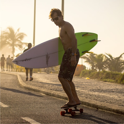Tenho que treinar constantemente, então muitas vezes eu levo o lado lúdico para os meus treinos e com o skate tem sido assim também, eu uso o skate para me divertir, compartilhar momentos em família, com meus amigos, para me locomover e para treinar. No final do dia eu me sinto muito mais preparado, mais saudável e assim rola uma interação muito maior com o meio ambiente, não tem poluição, é totalmente sustentável, então eu recomendo o o surfe skate, se você está afim de se divertir, ta afim de treinar e compartilhar esses momentos em família também.