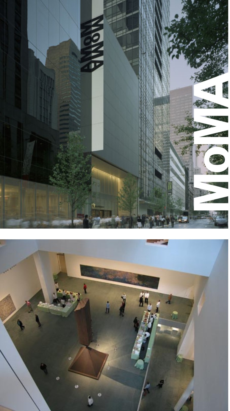 MoMa Muito se pode esperar do Museu de Arte Moderna de Nova York, também conhecido como MoMA, já que foi considerado um dos mais famosos e importantes do mundo. A abertura deste museu se deu em 1929 sob a direção de Alfred H. Barr, não só com o propósito de mostrar arte moderna aos nova-iorquinos, mas também para servir de espaço aos artistas de vanguarda que se dedicavam a mudança do visual artístico do seu tempo. Diante do sucesso que foi ao longo dos anos, novas expressões de arte foram conquistando espaço e foram criados departamentos de Filmes e Vídeos, Fotografia, Pintura e Escultura, Desenhos e Imagens e livros ilustrados. O local foi reformado em 2004 com um projeto arquitetônico de Yoshio Taniguchi. Hoje em dia o MoMA é uma verdadeira vitrine do mundo em relação à arte moderna. Em meio a suas pinturas e esculturas, o visitante ainda pode desfrutar de um agradável café na praça ao ar livre e depois se perder na gigante biblioteca. Sem dúvida a maior coleção do mundo de arte moderna merece sua visita.Local e contato: 11 West 53rd Street, [212] 254-8708.